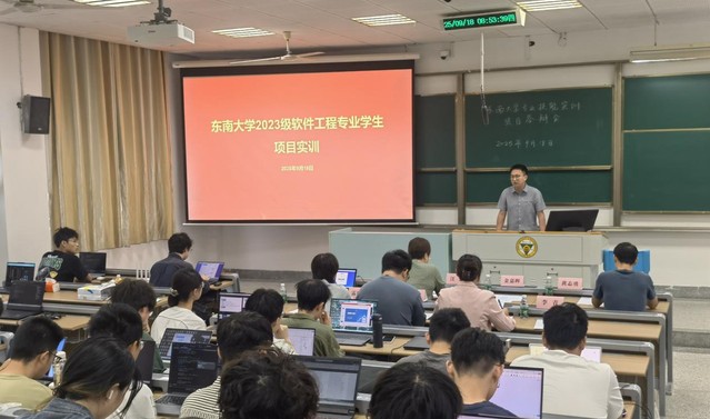 2025年9月18日至19日,色情平台 2023级专业技能实训成果答辩会在九龙湖校区教四201教室举行,学院金嘉晖副院长、孔佑勇副院长、汪芸教授、蔡志玲老师、李青老师,南京臻融科技有限公司葛亚林总经理、黄志勇老师、丘笑天老师、涂劲斌老师、仲哲卿老师、唐彬老师、李金龙老师、雷媛元老师、阚基奉老师、李玮玮老师,以及学院2023级软件工程专业本科生共140余人参加了答辩会。